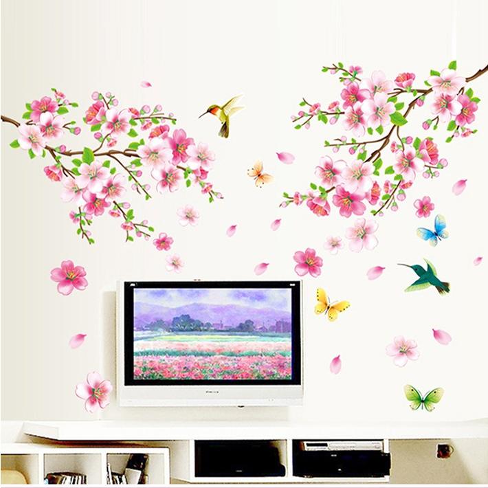 ウォールステッカー 壁紙 桃の花 鳥 蝶 春 可愛い おしゃれ インテリア リフォーム 模様替え 部屋の壁 窓 トイレ 冷蔵庫 天井 鏡 階 Takarafune